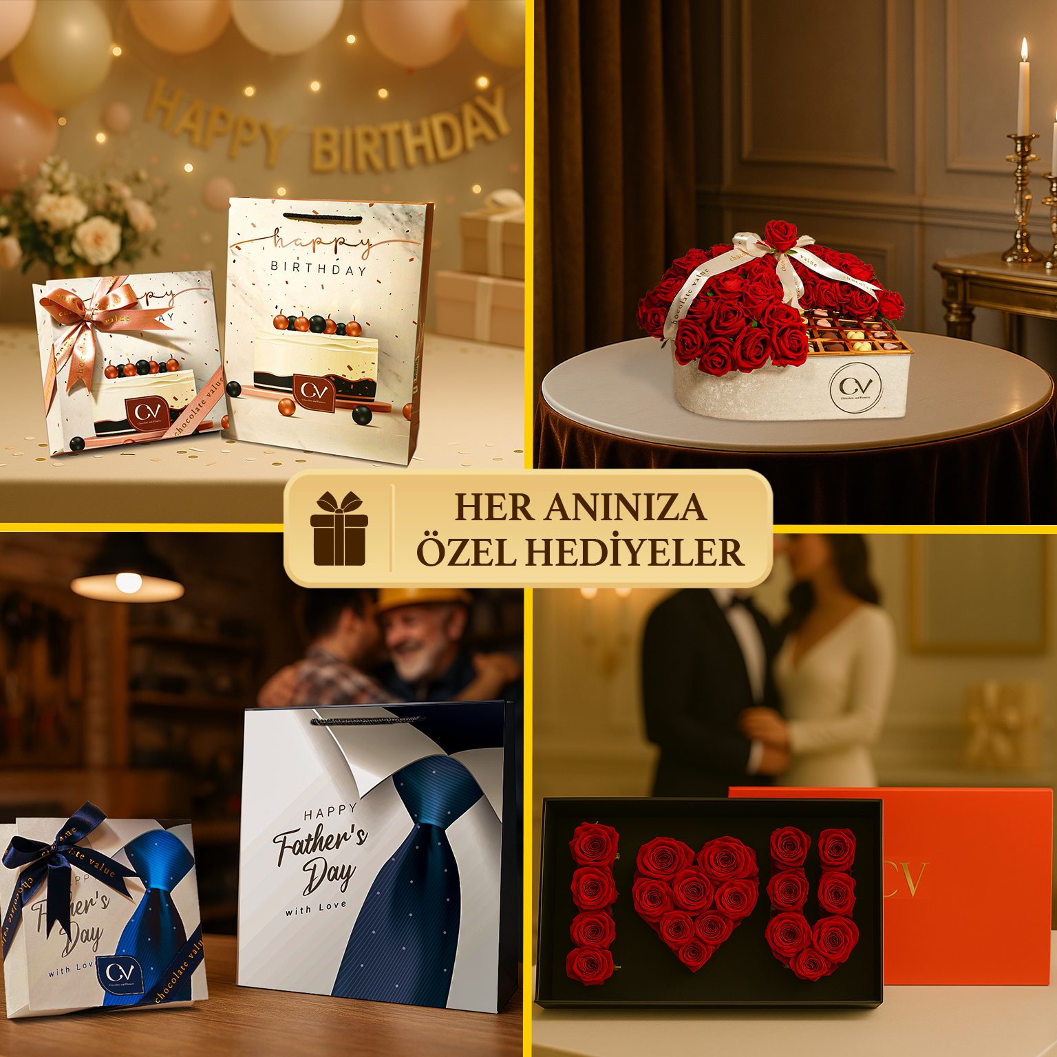 Çikolata kutularımız, her biri özenle seçilmiş enfes çikolatalarla doludur. Bitter, sütlü, beyaz çikolata çeşitleriyle hazırlanan kutularımız, içeriğinde fındık, fıstık, badem, kuru meyve gibi lezzetleri barındırır. Solmayan gül ve özel tasarım kutularımız ile çikolata hediyenizi daha anlamlı hale getirin.