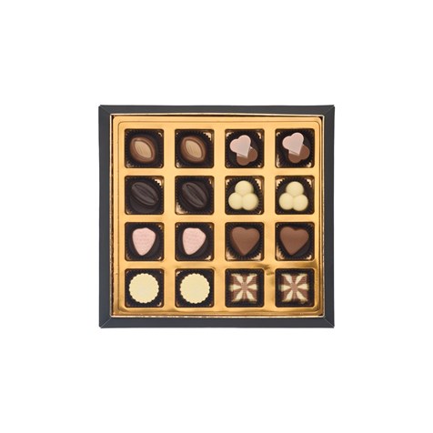 • 16 Adet Spesiyal Çikolata: Meyve, kahve, karamel, fındık ve fıstık gibi zengin aromalarla dolu eşsiz lezzetler.