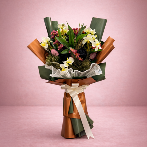 Bu özel buket; beyaz, yeşil ve toprak tonlarının uyumuyla hem zarif hem de güçlü bir görünüm sunar. Özellikle kurumsal hediyeler, özel günler ve “kaliteli bir izlenim bırakmak isteyenler” için ideal bir tercihtir.