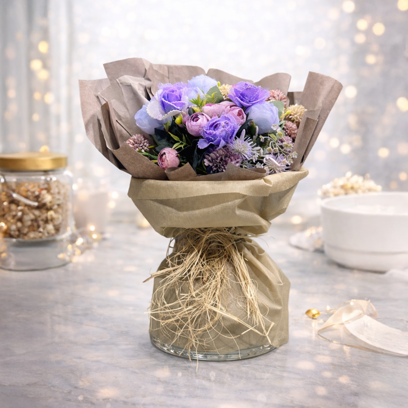 💐 Lavanta Rüyası Cam Vazo Buketi