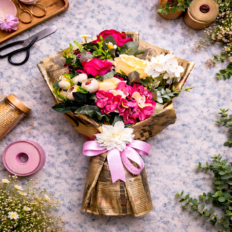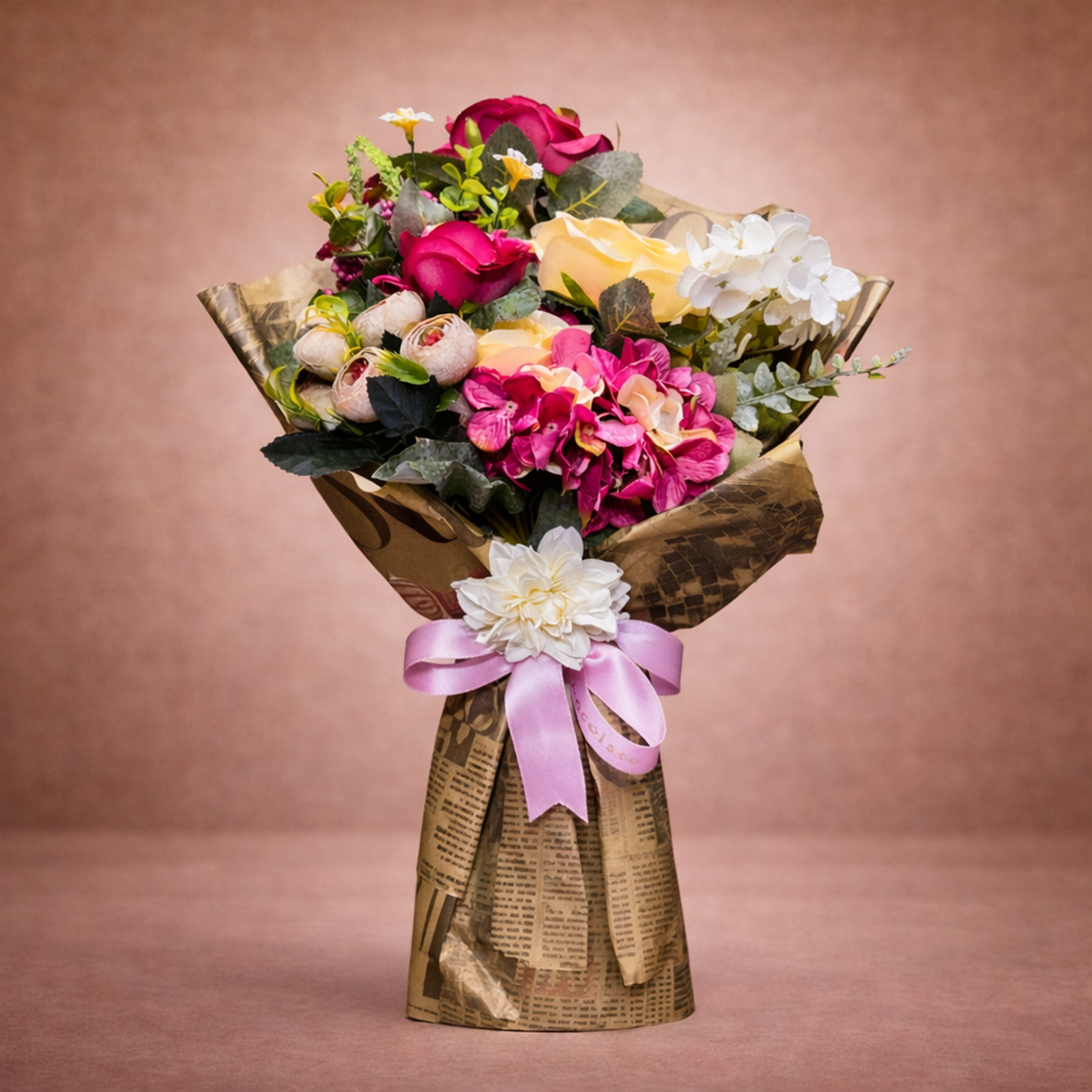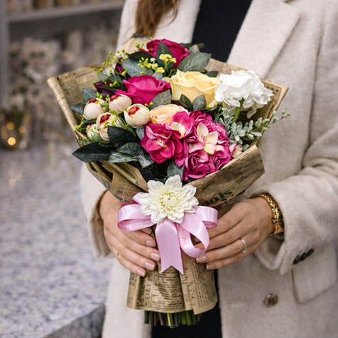 Canlı renklerin enerjisini ve zarafeti bir araya getiren bu özel çiçek buketi; renkli güller, ortanca ve mevsimin en taze çiçekleri ile özenle hazırlanır. Sevdiklerinize mutluluk, sevgi ve şıklığı tek bir bukette sunmak için tasarlanmıştır.