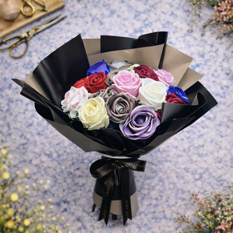 Her biri ayrı anlam taşıyan güller, buket içerisinde dengeli ve estetik bir kompozisyon oluşturur.