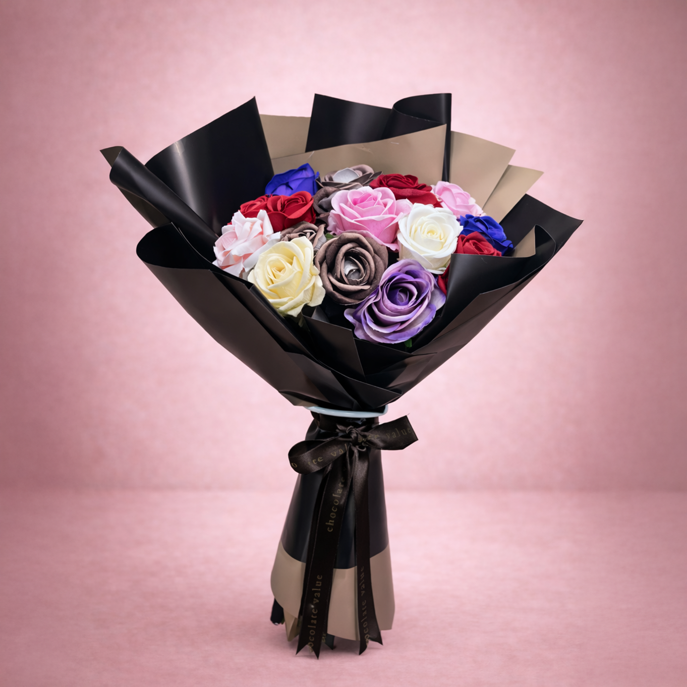 Zarif siyah ambalaj içerisinde bir araya getirilen farklı renklerdeki özel güllerle hazırlanan Renkli Düşler Premium Gül Buketi, duygularını tek bir renkle anlatmak istemeyenler için tasarlanmış güçlü ve şık bir aranjmandır.