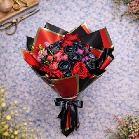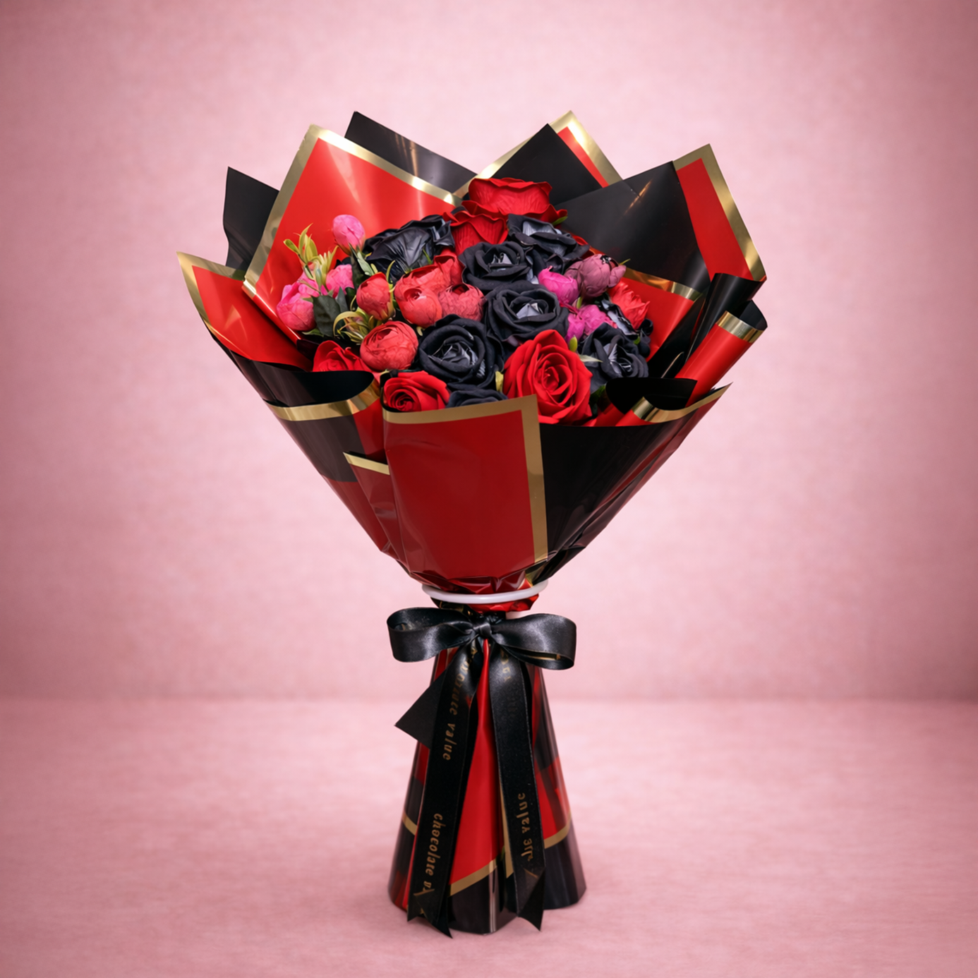 Tutkunun en güçlü renkleri olan siyah ve kırmızının büyüleyici uyumuyla tasarlanan Siyah Aşk Premium Gül Buketi, derin duyguları ifade etmek isteyenler için özel olarak hazırlanmıştır.