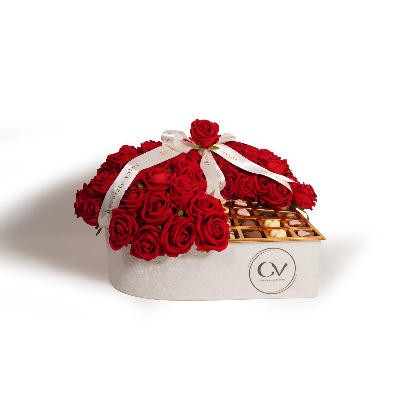 Sevginizi en özel ve anlamlı şekilde ifade edin: Kalp Şeklinde Çiçek ve Çikolata Kutusu - Kırmızı Gül. Aşkın ve tutkunun simgesi kırmızı güller, lezzetiyle büyüleyen çikolatalar eşliğinde unutulmaz bir hediye haline geliyor.