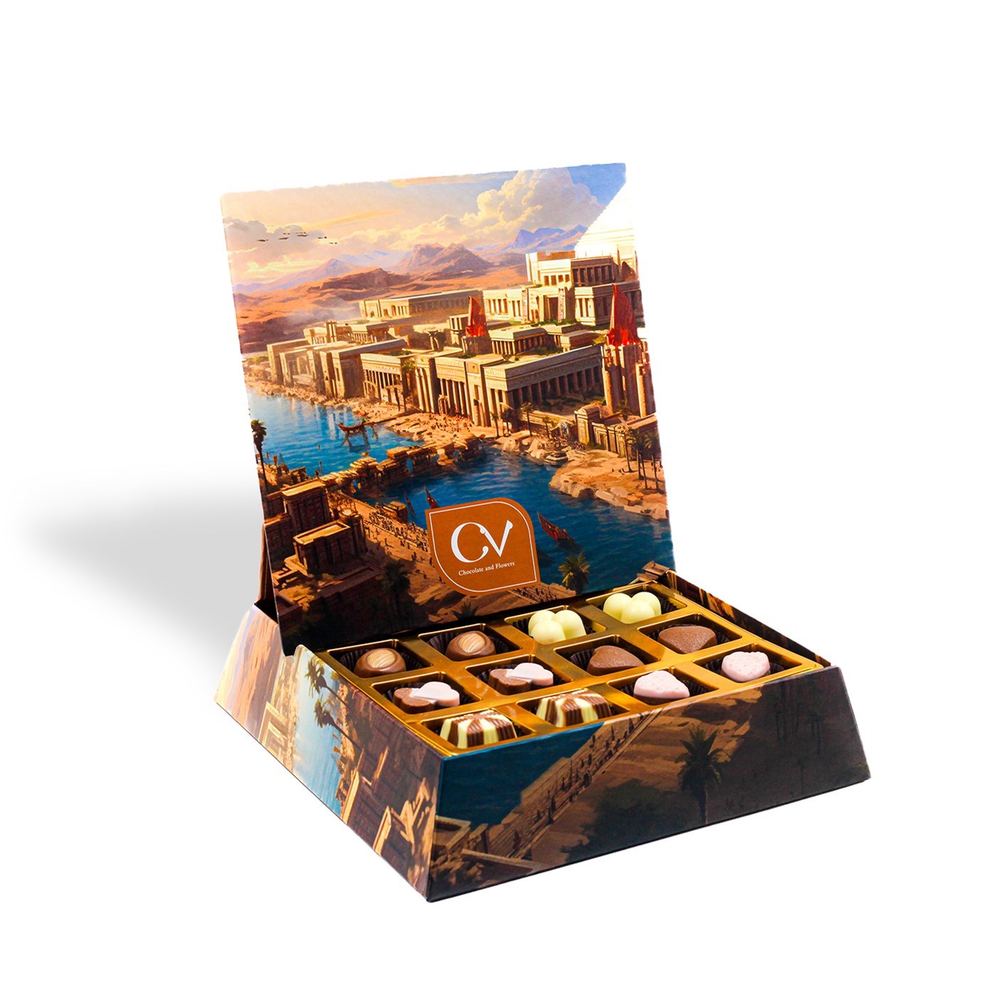 Bu özel kutu, çikolatalar bittikten sonra masanızda dekoratif bir tablo olarak kullanılabilir. Antik dünyanın zarafetini yansıtan kapağı, eşsiz bir hatıra sunar.