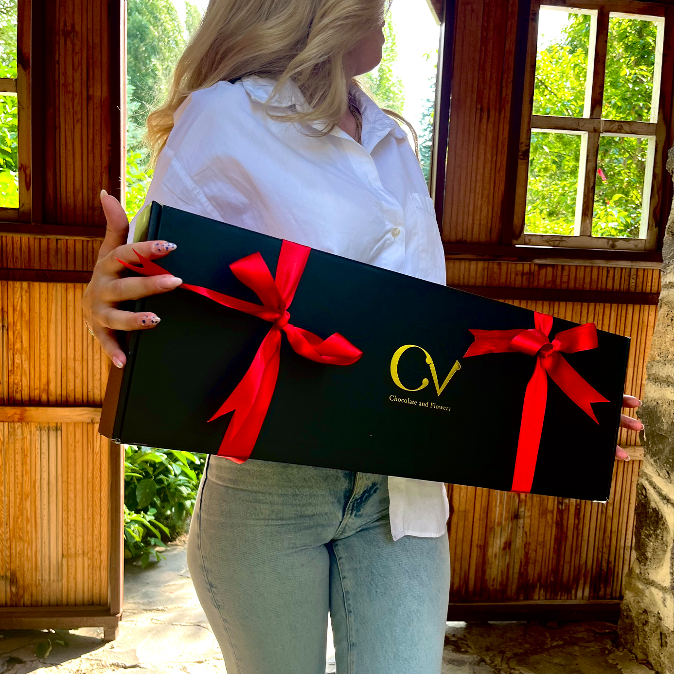 Zarafetin ve derinliğin en etkileyici haliyle buluştuğu bu özel kutuda, solmayan kadife lacivert güller ve enfes sütlü madlen çikolatalar bir araya geliyor. Siyahın asaletiyle lacivertin büyüsünü birleştiren bu hediye, sevdikleriniz için unutulmaz bir anlam taşıyor.