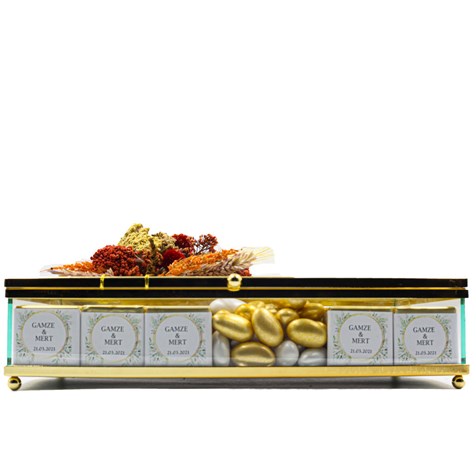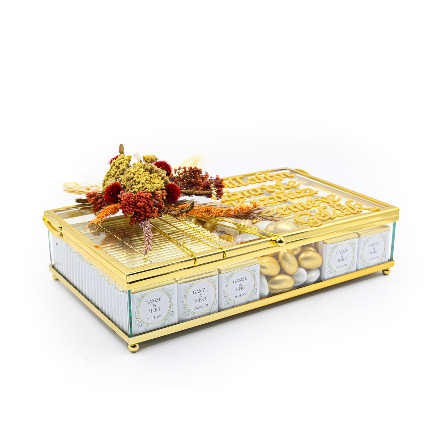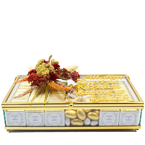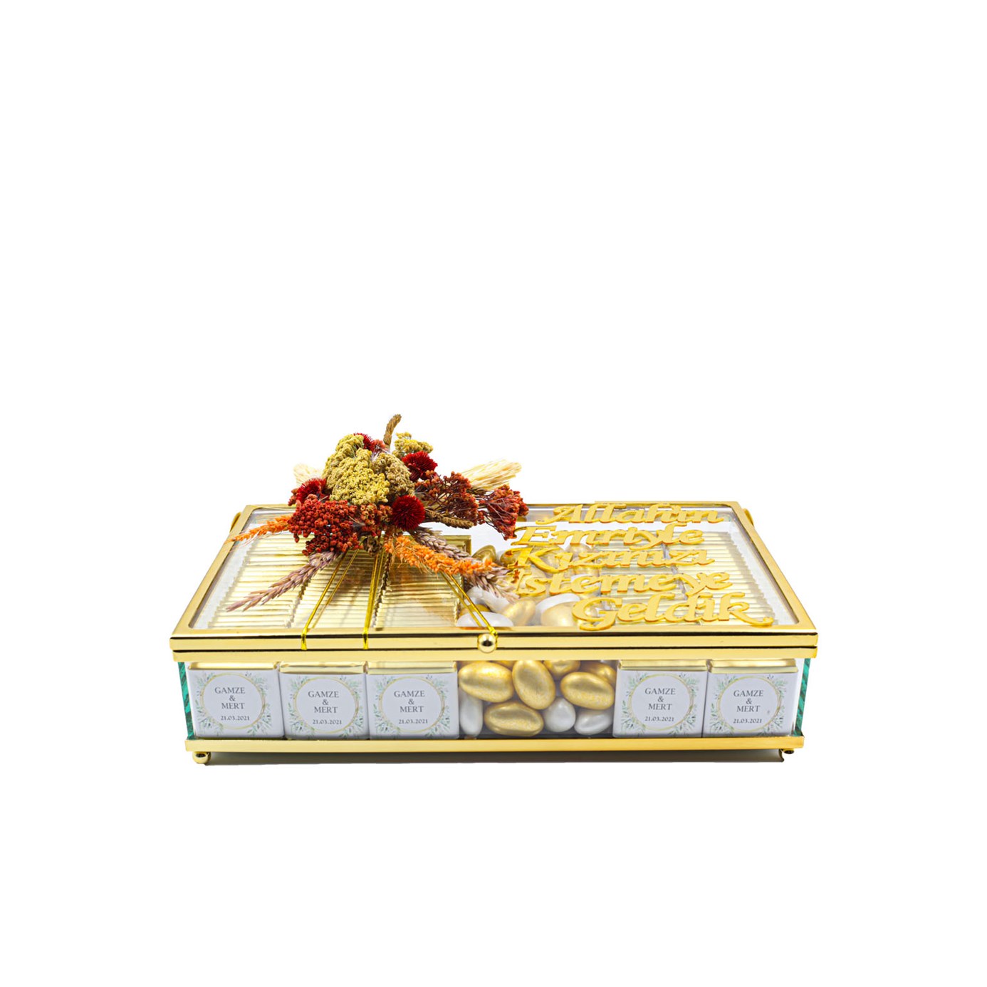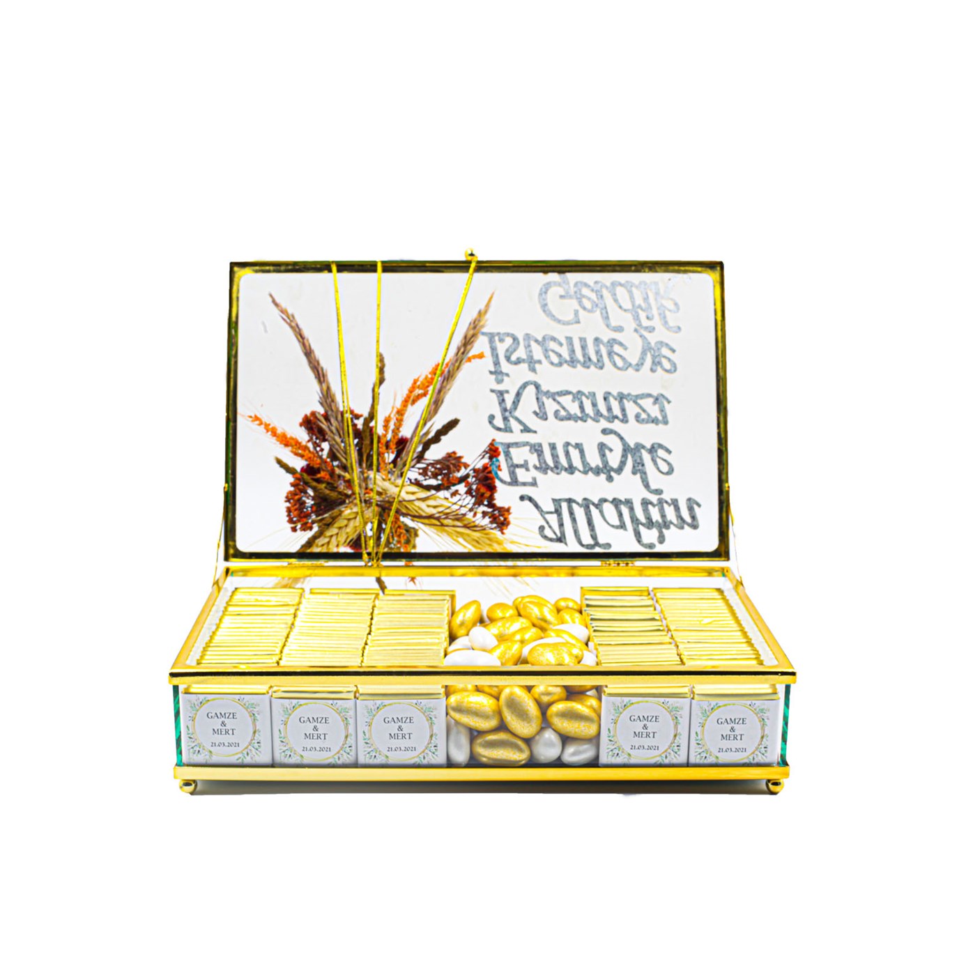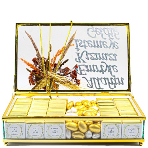 Altın Zarafet: Geleneksel İsteme Çikolata Kutusu, zarafetin ve geleneksel sevginin bir araya geldiği eşsiz bir tasarım! Altın detaylarla süslenmiş çikolatalar, şık cam kutu tasarımı ve özel kişiselleştirilmiş detaylar ile sevginizi en güzel şekilde ifade etmenin mükemmel yolunu sunuyor. Geleneksel isteme töreninizi şık bir ikramla taçlandırın.