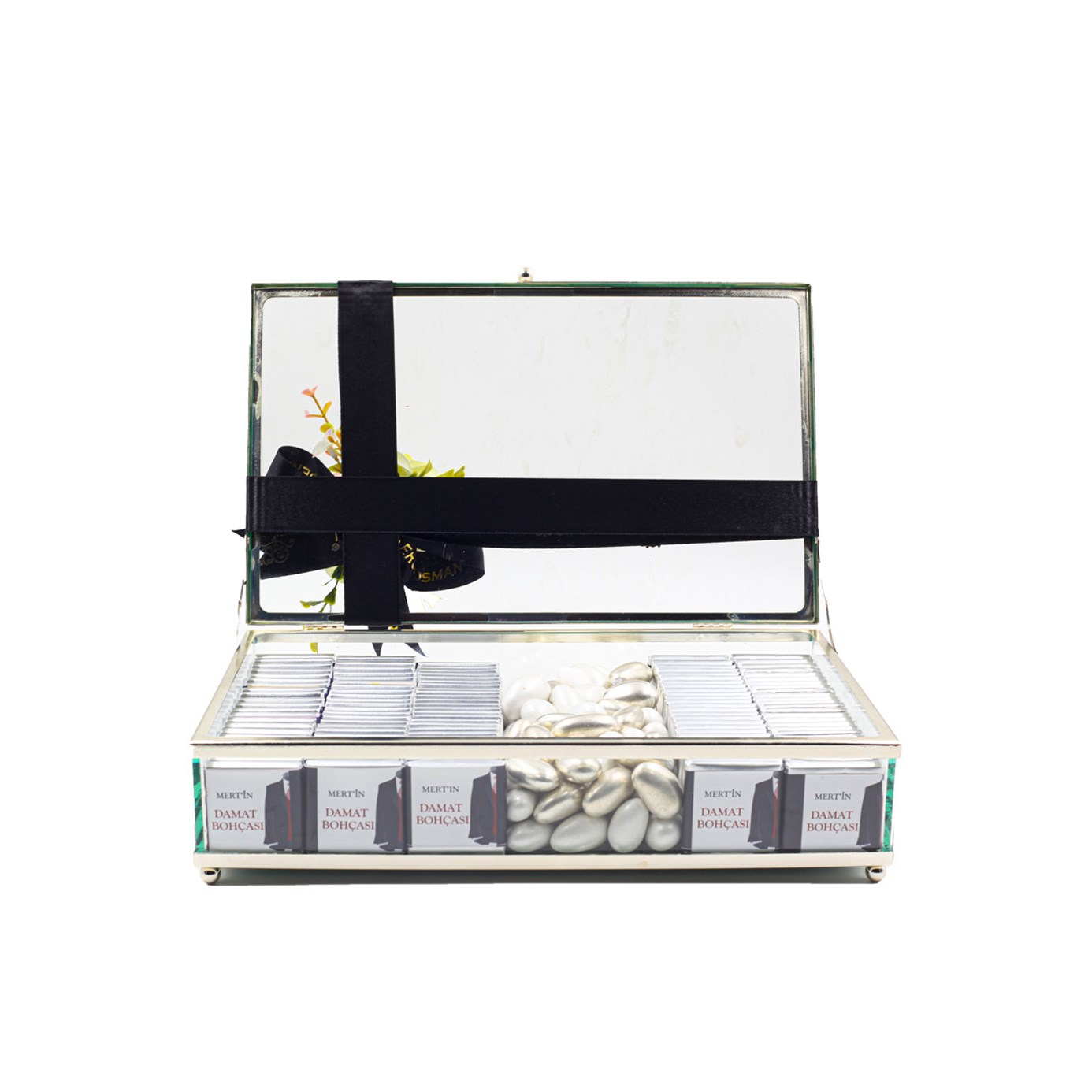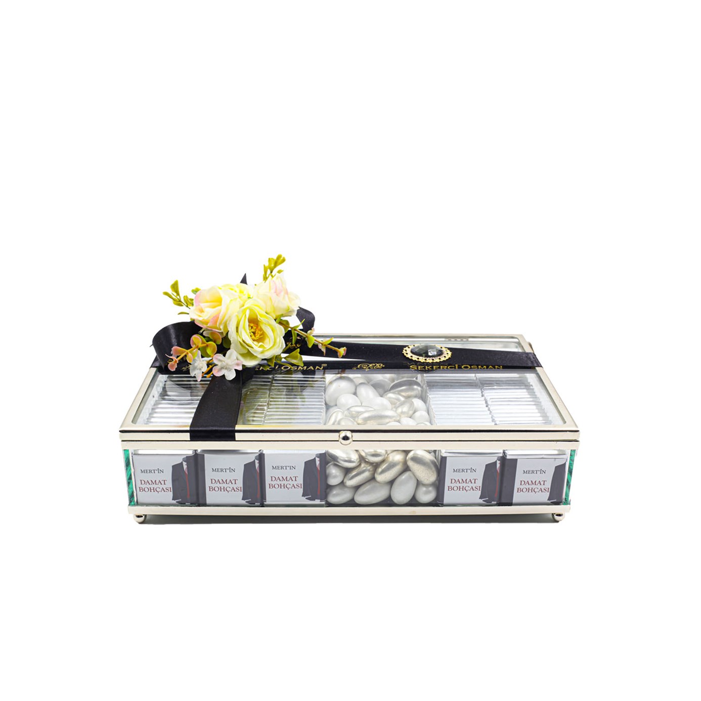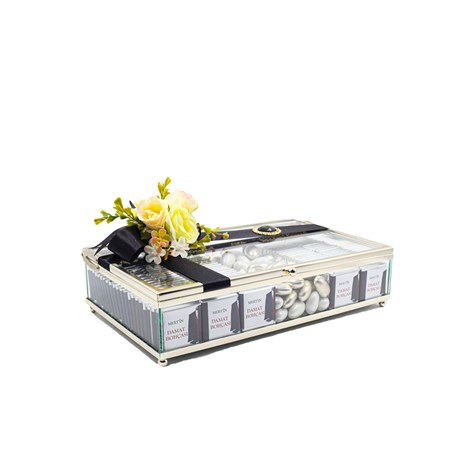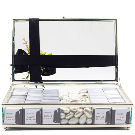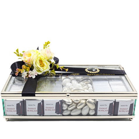 Damat Bohçası: Şık Beyaz Çikolata Kutusu, zarafetin ve sevginin beyazın saflığıyla birleştiği özel bir tasarım! Beyaz tonlarındaki şıklığı, premium çikolatalar ve özel süslemelerle birleştirerek geleneksel isteme töreninize mükemmel bir ikram sunuyor. Şık cam kutu içinde beyaz çikolatalar ve zarif detaylar ile sevginizi en tatlı şekilde ifade ediyorsunuz.